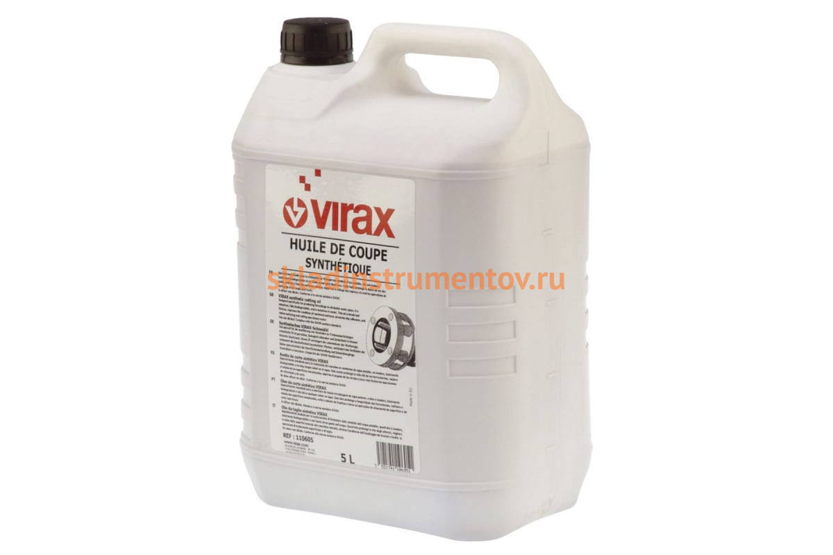 Масло синтетическое VIRAX 110605 предназначено для высокопроизводительной нарезки резьбы как для ручных клуппов, так и для автоматизированного резьбонарезного оборудования. Смазка позволяет получить резьбу лучшего качества и обеспечивает более длительный срок эксплуатации резьбонарезных ножей. При нарезке резьбы на питьевом водоснабжении после работ необходимо смыть масло специальной жидкостью. Поставляется в канистре, объём 5 литров.