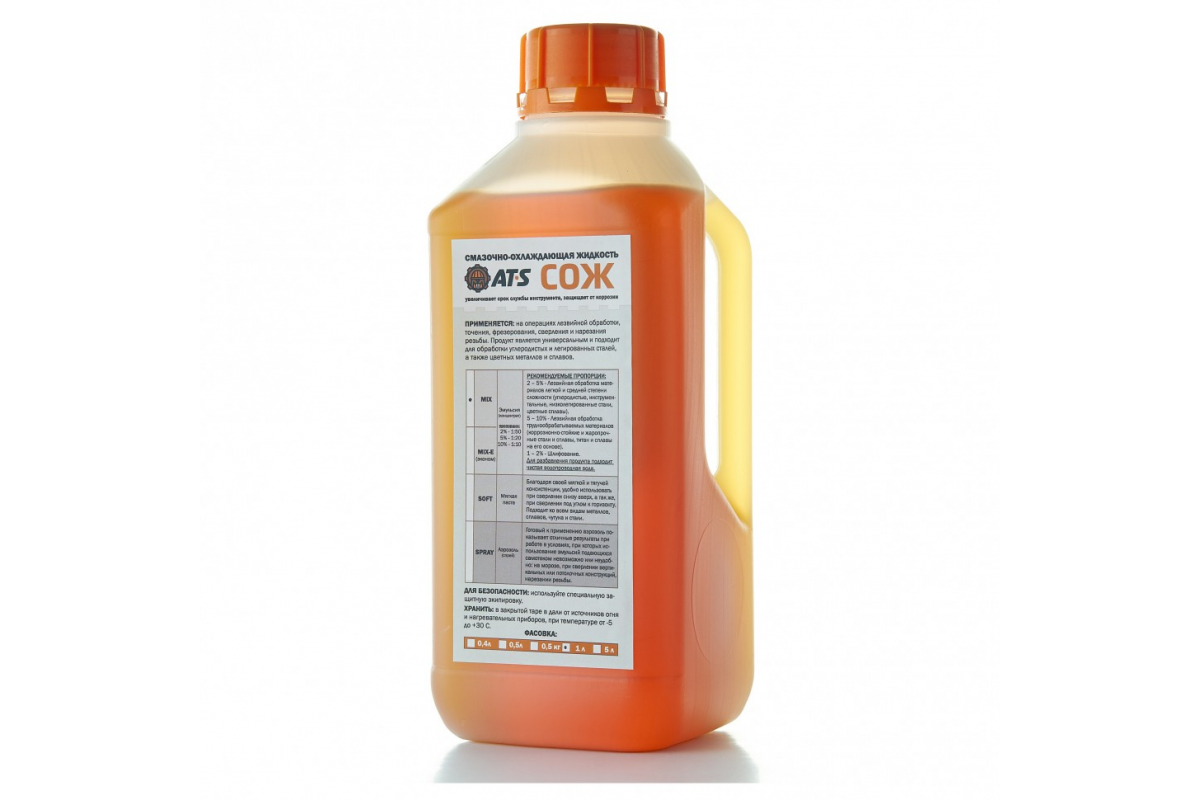 СОЖ (эмульсия, концентрат, 1 л) AT-S MIX - является биостабильной водосмешиваемой жидкостью с высоким содержанием масла. Образует стабильную полупрозрачную эмульсию при смешивании с водой. Минеральная жидкость.
