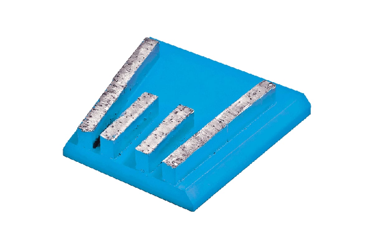 Франкфурт GFB 3 Адель КК09815 предназначен для мозаичных шлифовальных машин. Применяется для второго этапа лощения бетона всех марок. Обеспечивает гладкий пол с небольшой шероховатостью. Цвет – голубой. Размер сегментов – 40х8х9 мм. Зернистость – 80/60 мкм или 200 грит. Ресурс – 1500 кв/м при снятии 1 мм обрабатываемой поверхности. Глубина царапин – 0.05 мм.