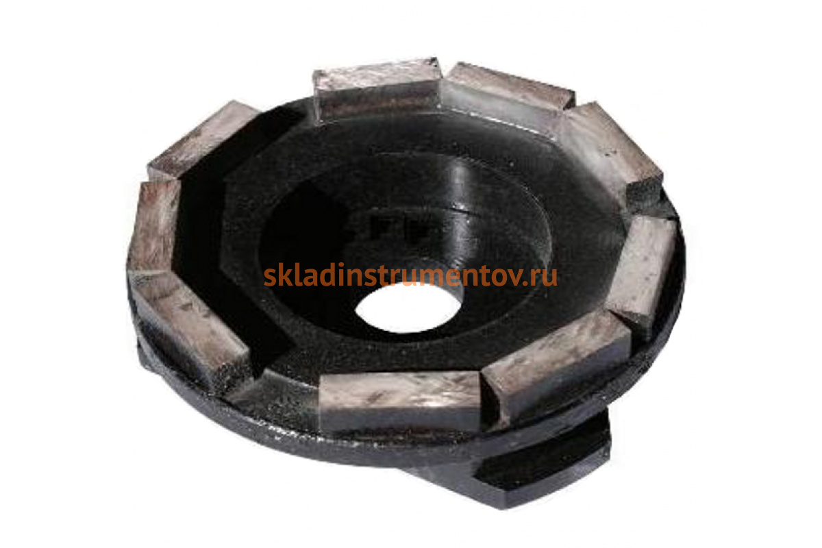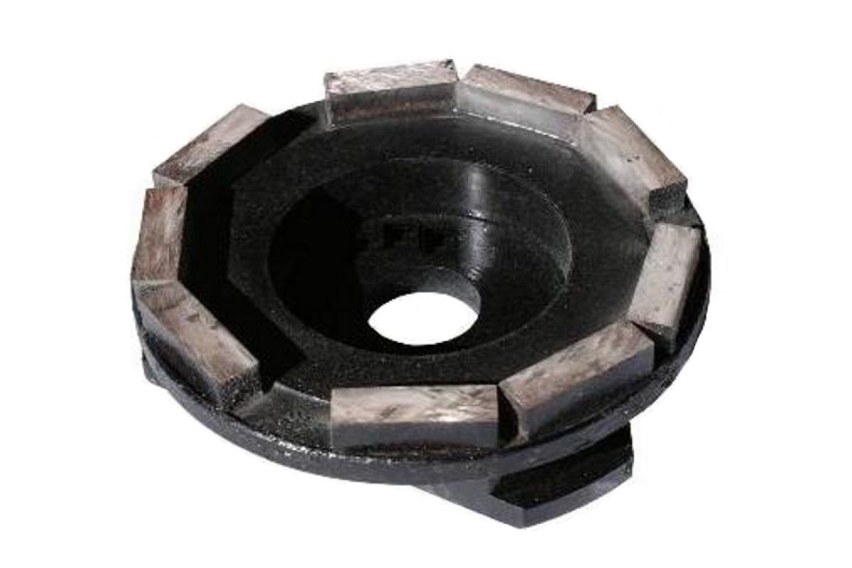 Алмазная фреза c переходником Мисом используется в строительстве совместно с мозаично-шлифовальными машинами. Предназначена для проведения операций шлифования и полирования поверхностей из обычного и декоративного бетона. Требует охлаждения водой, которая подается через шланг, предусмотренный в конструкции машины. Примерный ресурс работы фрезы - 1000 м при снятии 1 мм слоя. Диаметр 95 мм. Диапазон зернистости - от 60/40 до 1250/800. При заказе необходимо уточнять требуемую зернистость.