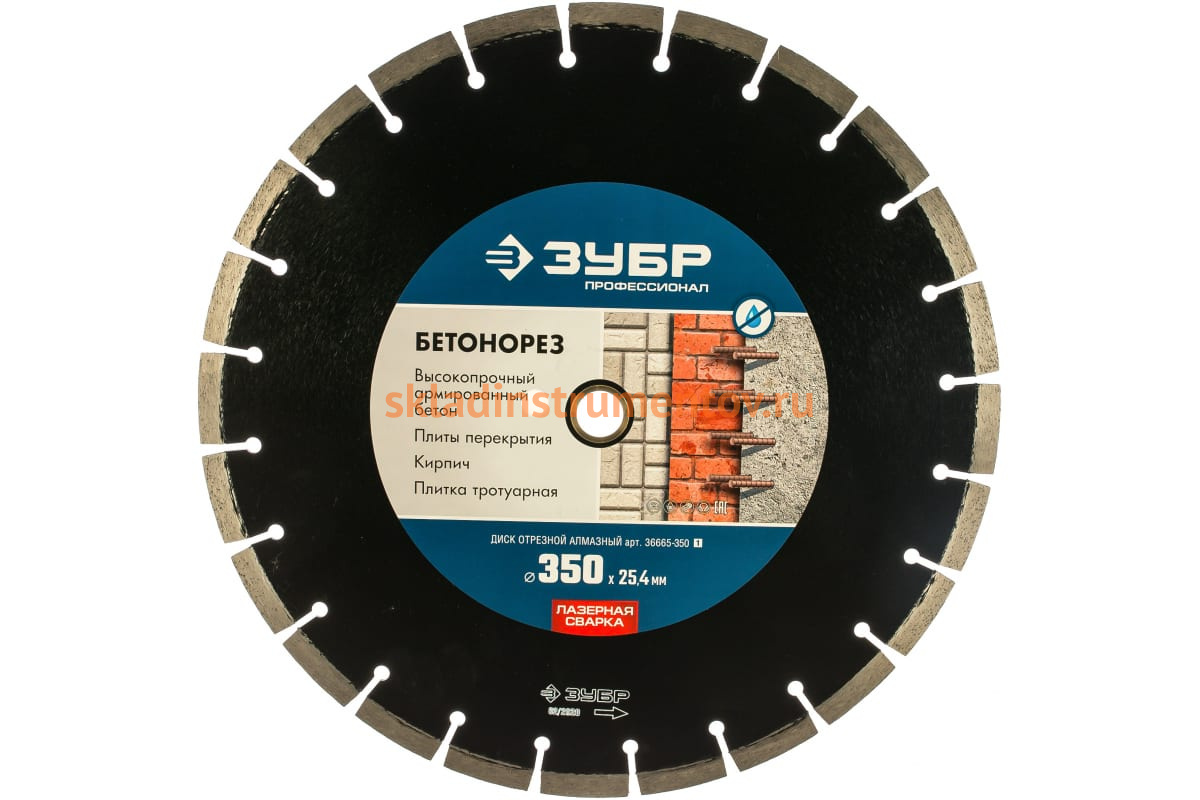 Диск алмазный отрезной ПРОФЕССИОНАЛ БЕТОНОРЕЗ Зубр 36665-350_z01 предназначен для швонарезчиков и бензорезов. Применяется для резки бетона, кирпича, тротуарной плитки и прочих строительных материалов. Диск изготовлен с применением технологии серебряной пайки алмазных сегментов. Оснастка позволяет выполнять пропилы быстро, чисто, точно без больших усилий и обладает увеличенной ресурсоемкостью.