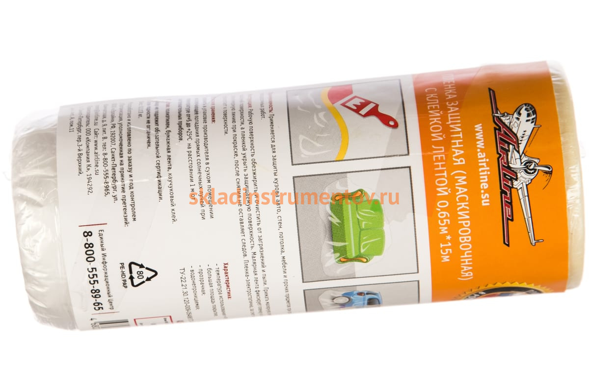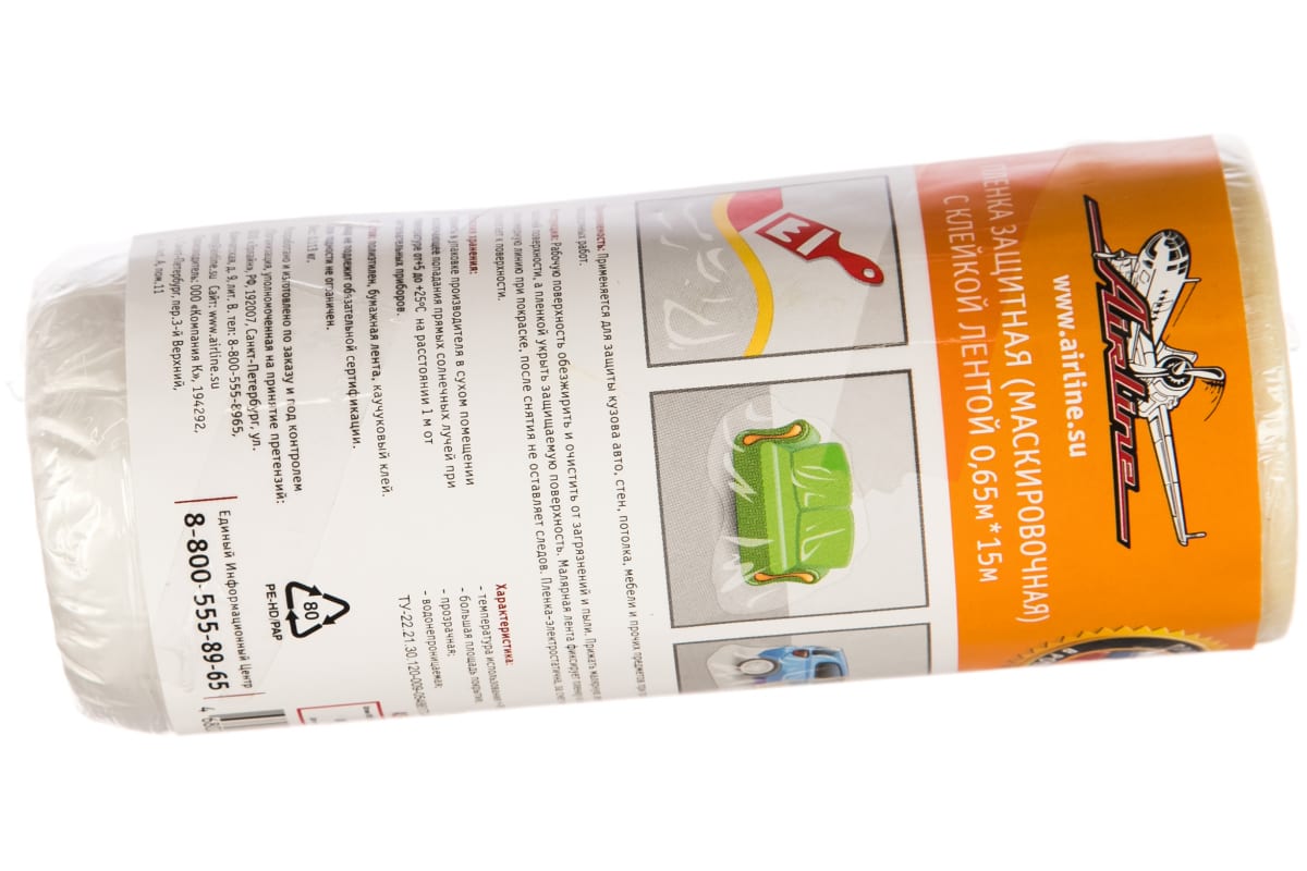 Пленка защитная маскировочная с клейкой лентой 0,65х15 м Airline ASF-PE-01