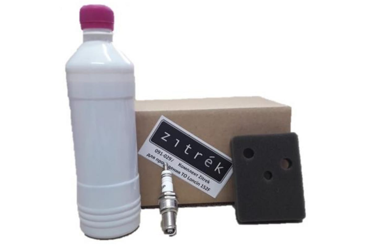 Комплект Zitrek 091-0297 предназначен для проведения ТО двигателя Loncin 152F. В комплект входит: моторное масло РОСНЕФТЬ Revolux D1 15W-40 – 0.4 л, свеча зажигания Loncin 152, фильтр воздушный Loncin 152.
