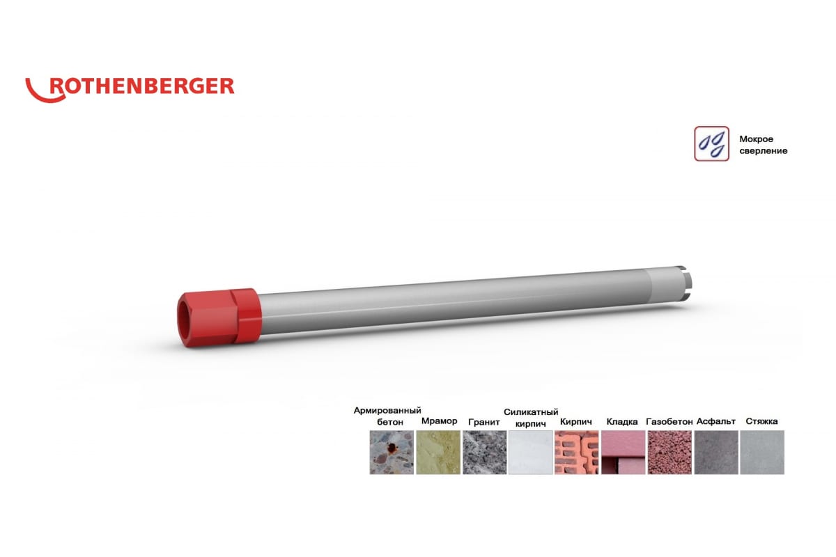 Коронка сверлильная алмазная HSP-E Rothenberger FF51056 является сменным элементом для установок алмазного бурения. Применяется для мокрого сверления отверстий в армированном бетоне, мраморе, граните, силикатном кирпиче, кирпиче, кладке, газобетоне, асфальте, стяжке. Благодаря использованию специальных химических веществ при изготовлении, алмазная крошка удерживается в сегменте значительно дольше, что обеспечивает высокий ресурс оснастки и высокую скорость сверления отверстий.