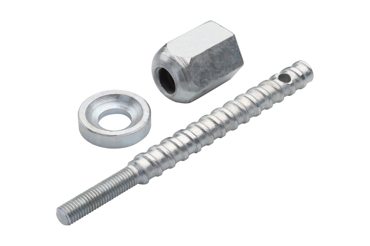 Комплект крепления с самоцентрирующейся гайкой к анкеру М12 REKON 014001 предназначен для фиксации станины к поверхности с помощью анкеров. Такая конструкция позволяет намного увеличить срок службы самой шпильки, т. к. при отклонении угла от перпендикуляра к поверхности, шарнирные элементы выравнивают угол наклона в диапазоне до 20 град, и прижимают основание станины без сгибания шпильки.