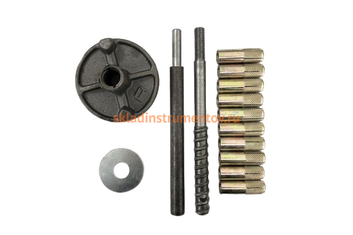 Комплект анкерного крепления DIAM 620038 предназначен для быстрого и удобного крепления сверлильных машин за счет шпильки М12х16 мм.