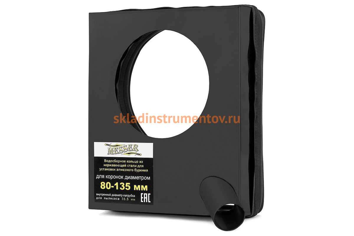 Устройство водосборное MESSER 10-10-007 предназначено для работы с алмазными коронками диаметром от 80 до 135 мм. Оснастка востребована для проведения работ в помещениях с готовой отделкой, где нельзя допустить растекания воды.