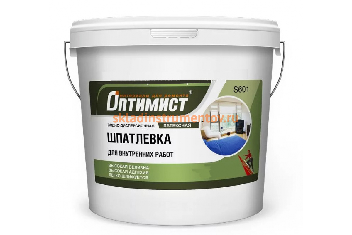 Шпатлевка S601 Оптимист 00-00001518 служит для затирки трещин и выравнивания поверхностей. Подходит для нанесения на бетон, кирпич, штукатурку, дерево, гипсокартон и т.д. Предназначена для внутренних работ.