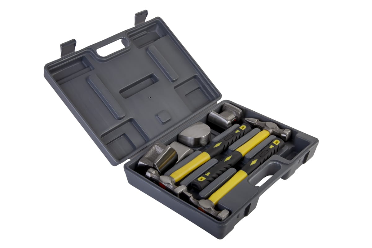 Рихтовочный набор для кузовных работ WIEDERKRAFT WDK-65468 включает в себя молотки и наковальни различных размеров. Комплект служит для выправления вмятин кузова автомобиля. Молотки обладают прорезиненными рукоятками, что обеспечивает надежный хват и снижает вибрацию при ударе. Каждая наковальня оснащена двухсторонним профилем для проведения максимально точных работ. Пластиковый кейс облегчает транспортировку и хранение.