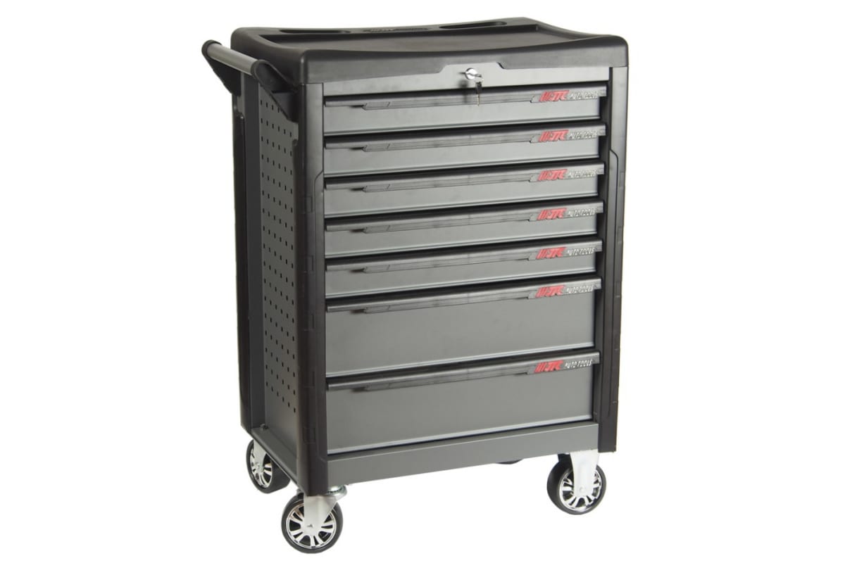Тележка инструментальная (7 секций, серая, на колесах) JTC 5021C используется в автомастерских и обычных гаражах для систематизации хранения инструмента и небольших деталей. Преимущество тележки заключается в возможности ее простой транспортировки непосредственно к месту проведения ремонта. Транспортировочная рукоятка имеет высокую прочность и ее можно использовать даже при полной загрузке тележки. Перфорированные боковые стенки обеспечивают вентиляцию и отсутствие влаги внутри тележки.