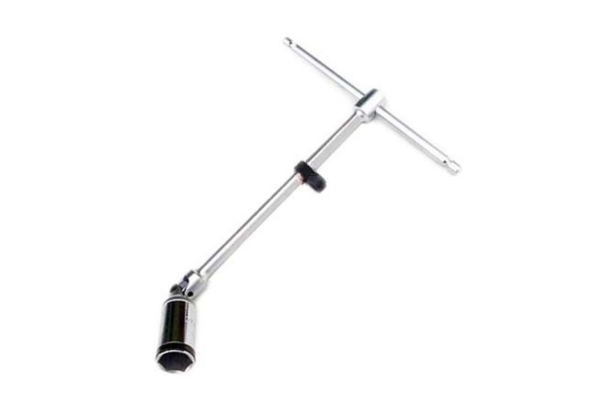 Т-образная рукоятка и возможность наклонить инструмент под нужным углом облегчает доступ к свечам.