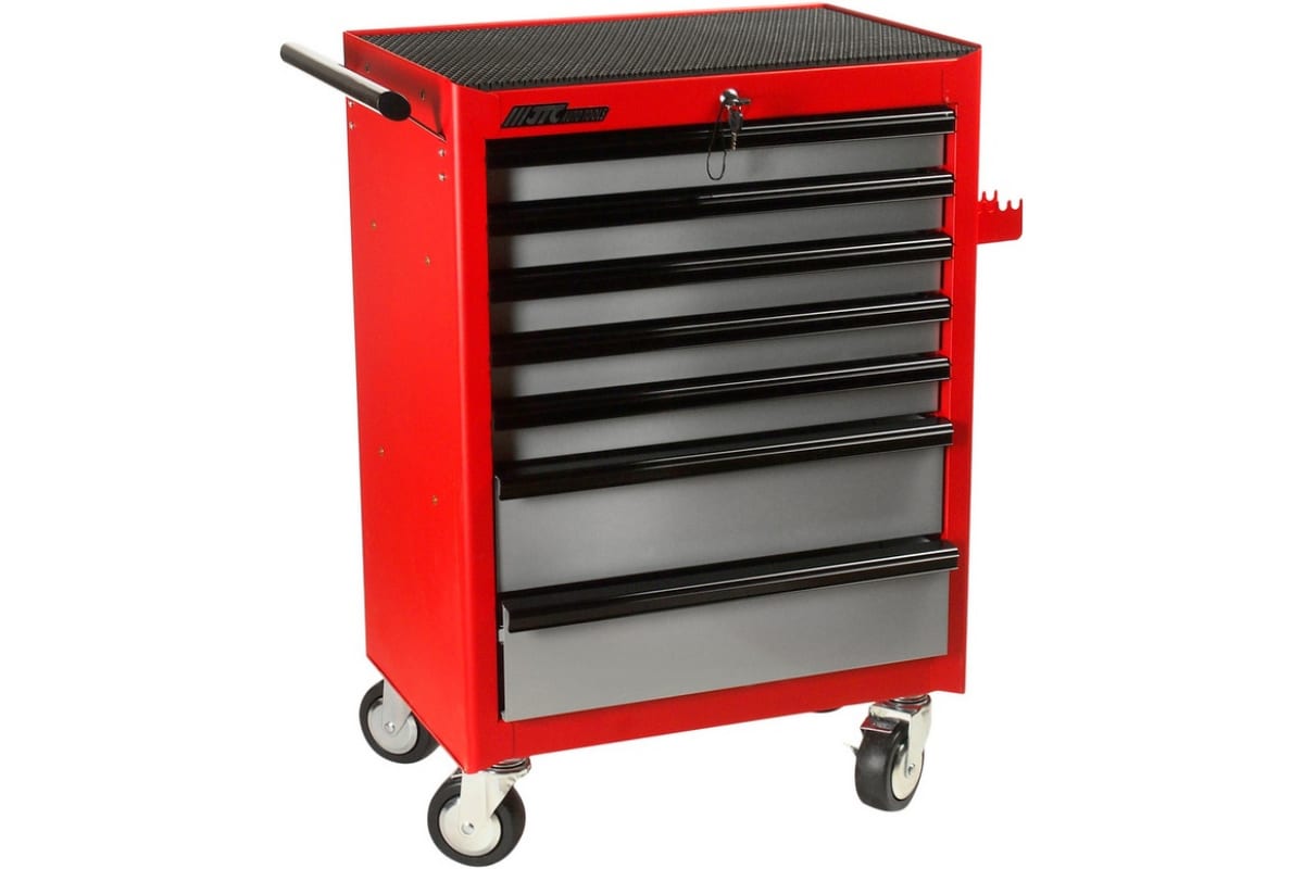 Инструментальная тележка с набором инструментов 7 секций 344 предмета JTC-3931+344 - оптимальный вариант мобильной системы хранения для упорядоченного размещения рабочего инструмента. Тележка станет надежным помощником для любого мастера в быту (в гараже, домашней мастерской) или профессиональной сфере деятельности (на производстве, в автосервисе и пр.). Пять из семи секций уже заполнены всеми необходимыми инструментами и приспособлениями для возможности выполнения широко спектра работ.