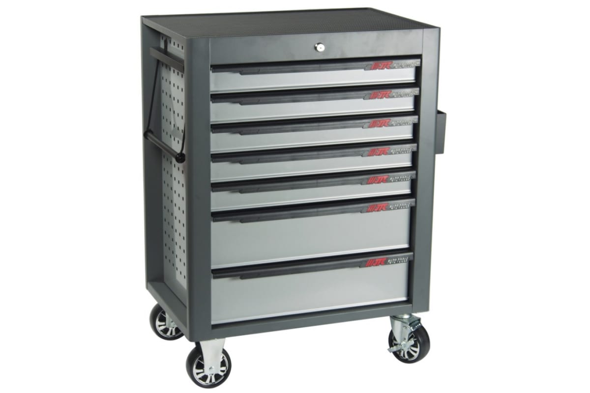 Тележка инструментальная (7 секций, серая, на колесах) JTC S1074 используется для хранения и систематизации крепежа, деталей и инструмента. Простая, но эффективная система хранения обеспечивает компактное расположение всех компонентов. Надежность конструкции обеспечивается прочным металлическим корпусом и наличием ребер жесткости. Подвижная транспортировочная рукоятка позволяет передвигать тележку в любом направлении. Для простоты перемещения есть пара поворотных колес с тормозной системой.