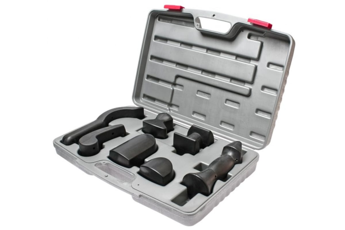 Набор рихтовочных прорезиненных оправок (7 предметов, кейс) JTC 2554 служит для кузовного ремонта в условиях профессионального автосервиса. Прорезиненная поверхность исключает случайное выскальзывание приспособлений в процессе работы.