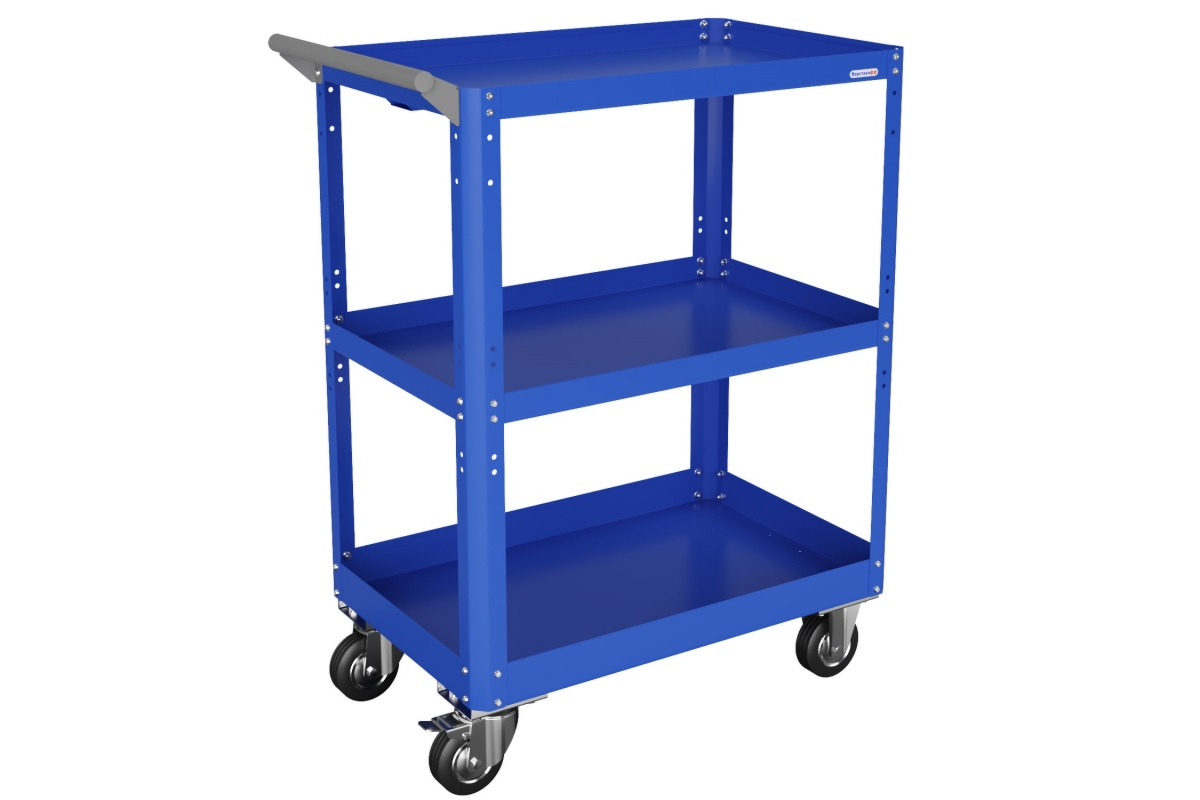 Тележка Верстакофф PROFFI-МT1.H950 103119 с тремя полками. Корпус выполнен из листовой стали толщиной от 0,6 до 1,5мм., покрыт полимерной порошковой краской. Верхняя и средняя полка имеют высоту борта 40мм., нижняя полка имеет высоту борта 60мм