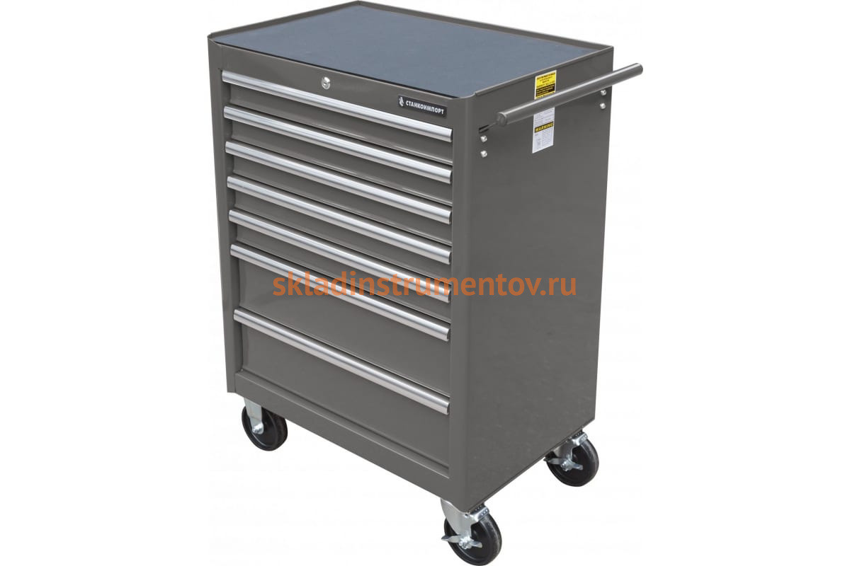 Инструментальная тележка на колесах, 7 ящиков, серая Станкоимпорт BTD-270071CS gre является мобильным рабочим местом для слесаря или автомеханика, которое позволяет вмещать в себя все необходимые инструменты и приспособления в зависимости от специфики выполняемых работ. Тележка обладает высокопрочной конструкцией с ребрами жесткости и усилителями. Полки и ящики легко выдвигаются и задвигаются. Есть возможность центрального запирания. Корпус имеет надежную порошковую окраску.