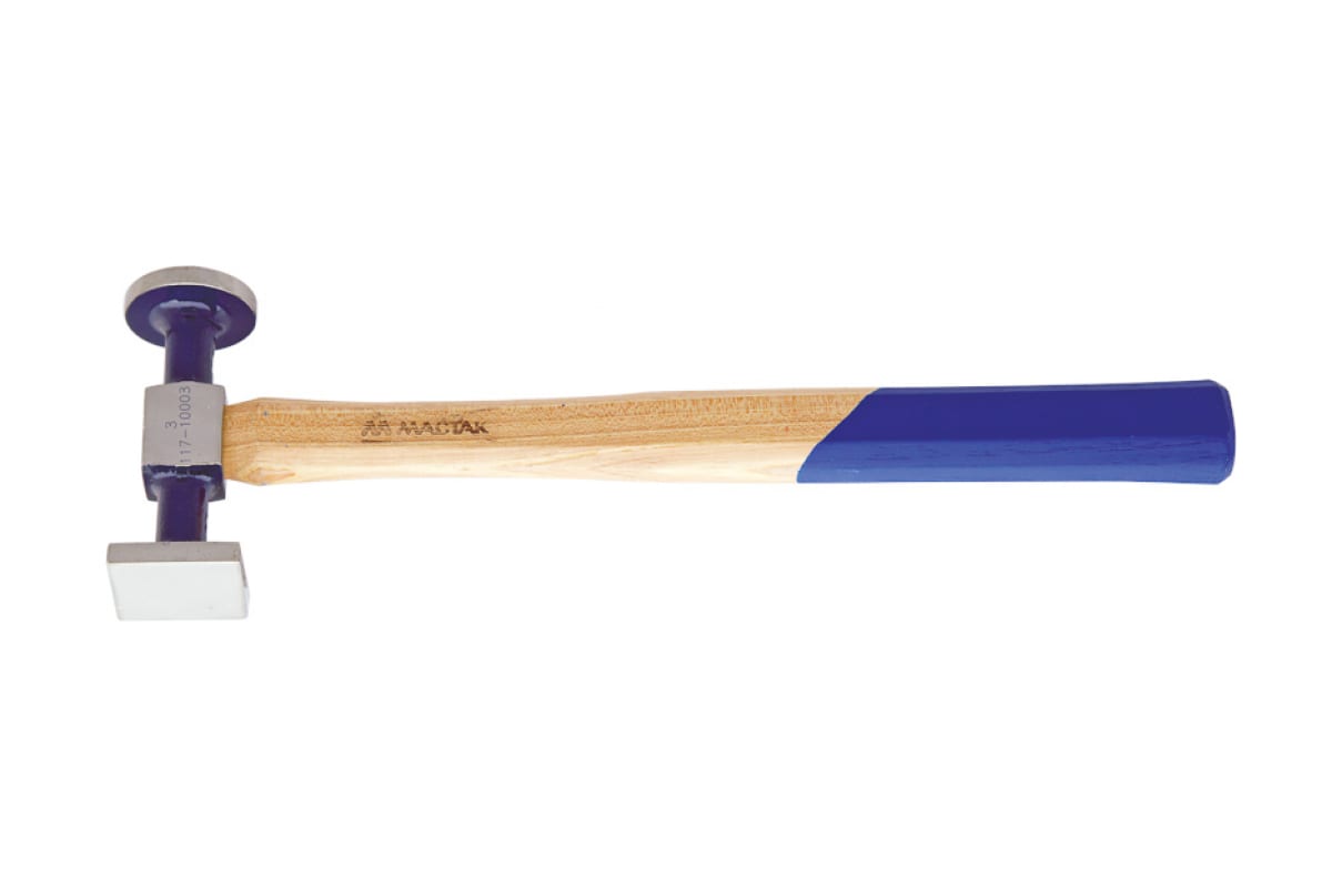 Рихтовочный молоток МАСТАК №3 117-10003 используется в автомастерских для выполнения кузовных работ. Он отличается высоким рабочим ресурсом и рассчитан на длительную эксплуатацию. Рабочая часть молотка изготовлена из качественной стали и оснащена круглым и квадратным бойком. Деревянная рукоятка обеспечивает крепкий захват и удобно лежит в руке.