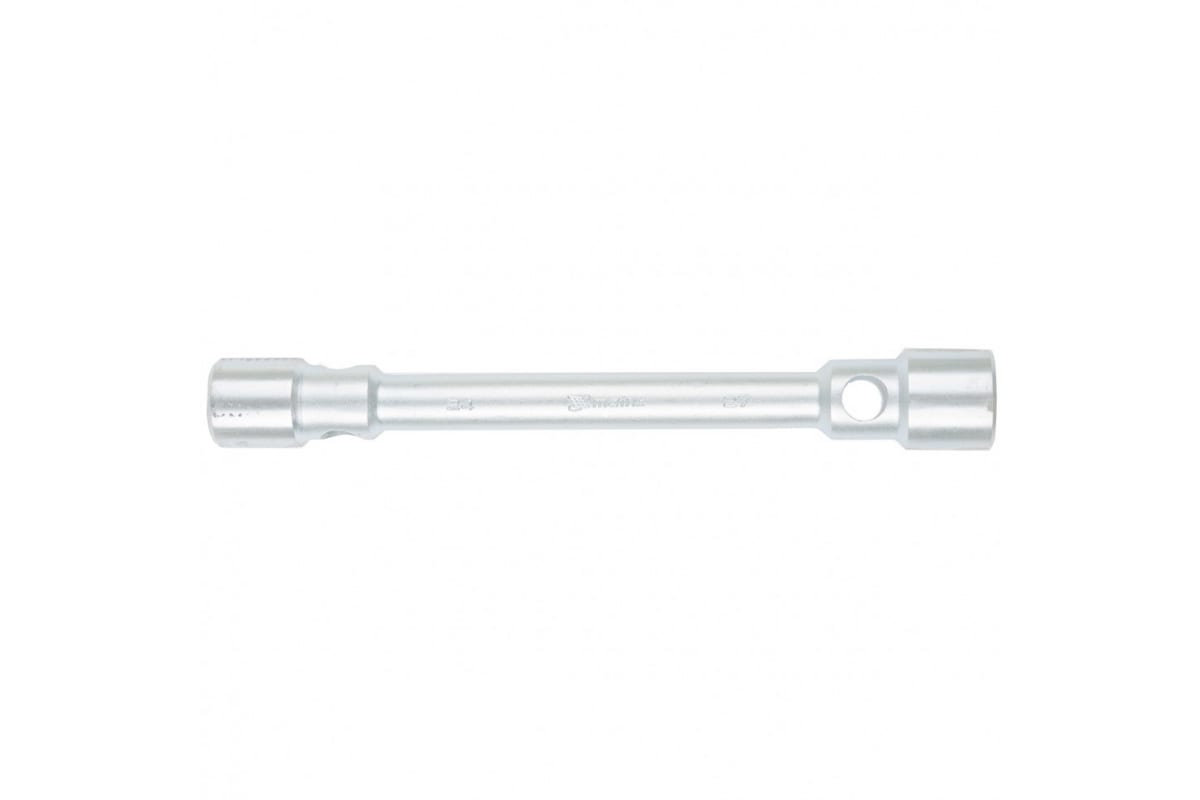Двухсторонний баллонный ключ MATRIX 14295 обладает прочной усиленной конструкцией, которая выполнена из углеродистой стали и защищена от коррозии цинковым покрытием. Данный инструмент используется для установки и демонтажа колес грузовых автомобилей и автобусов.