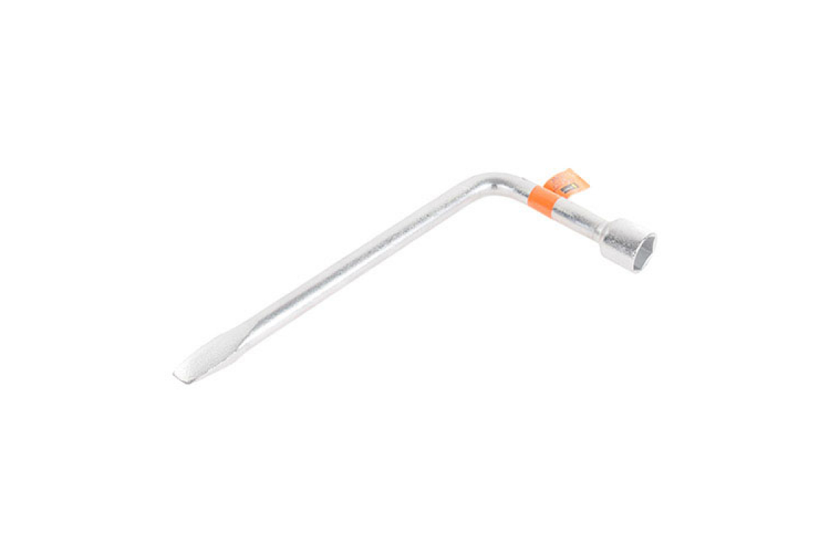 Баллонный Г-образный ключ 22мм L=350мм с лопаткой ЭВРИКА ER-34022 удобен в использовании за счет угловой формы, которая позволяет вращать крепеж с небольшим усилием.