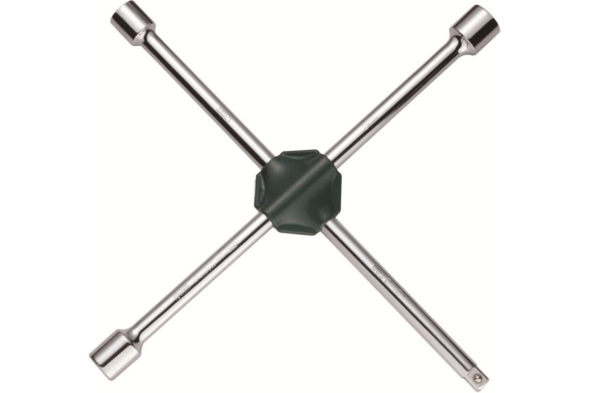 Универсальный крестообразный баллонный ключ SATA 48101 - профессиональный инструмент для использования в шиномонтажных мастерских. Оснащен тремя головками разного размера: 17, 19 и 21 мм, а также присоединительным квадратом 1/2 дюйма для возможности посадки головки любого другого размера. Габариты изделия: 330х330х50 мм.