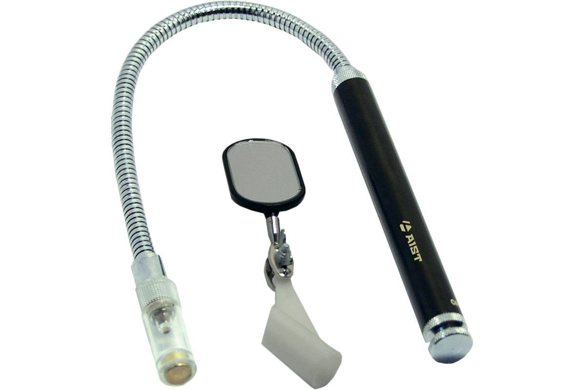 Рукоятка с гибким стержнем с зеркалом и магнитом 3 в 1 AIST 19913803 00-00004156 применяется для выявления дефектов в узких и труднодоступных местах. Специальный наконечник с магнитом позволяет доставать застрявшие металлические детали.