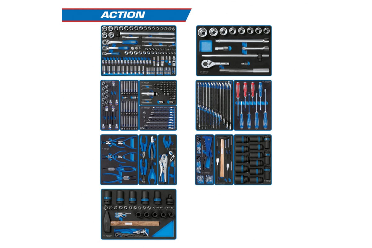 Набор инструментов для тележки KING TONY ACTION 15 ложементов 327 предметов 934-327MRVD включает в себя широкий ассортимент инструментов и приспособлений, которые необходимы для выполнения ремонтных, сборочных, демонтажных и прочих работ в сфере профессиональной деятельности. Комплект станет надежным помощником для любого мастера при организации персонального рабочего места в автосервисах, на СТО, в производстве и пр. Ложементы удобны для размещения в инструментальной тележке - любой компонент всегда находится под рукой.