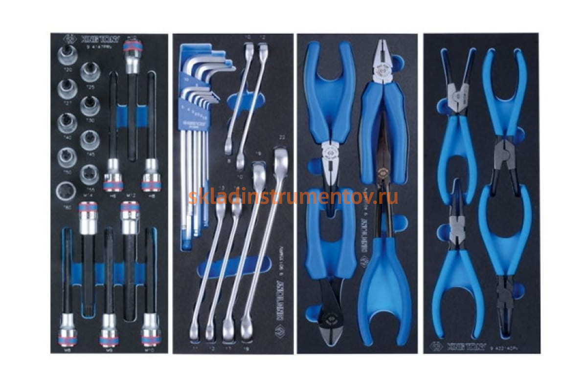 Набор инструментов в красной тележке KING TONY 934-235MMR - идеальное дополнение для рабочего места мастера в автомастерской, на станции технического обслуживания. Есть возможность разместить инструменты по типу, назначению и по частоте использования, что гарантирует содержание набора в порядке. Инструменты выполнены из инструментальной легированной хром-ванадиевой стали специального сплава. Прочность и надежность обеспечивается благодаря специальной технологии изготовления ключей и головок. Ложементы сделаны из этиленвинилацетата. Материал легкий и прочный, а также обладает стойкостью к маслам и растворителям, возвращается к прежней форме при деформации.