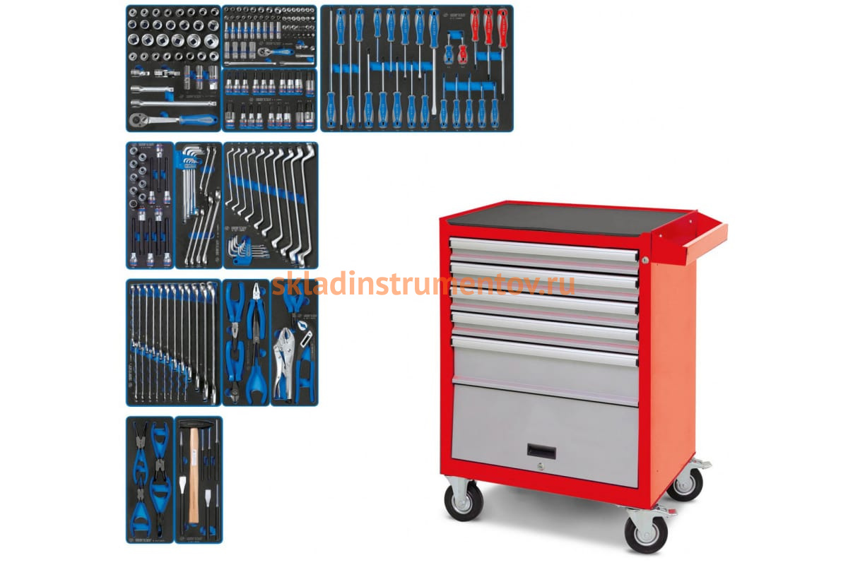 Набор инструментов KING TONY "EFFORT" в красной тележке, 235 предметов 934-235AMR представлен в расширенной комплектации.