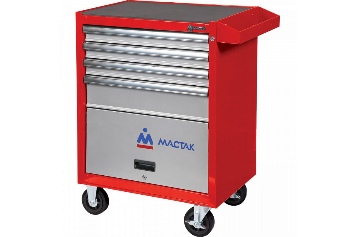 Инструментальная тележка МАСТАК серии ОПТИМА, 4 полки и отсек, красная 522-04581MR выполнена из листового металла на прочном и жестком каркасе. Конструкция выдерживает значительную нагрузку. Ее не перекашивает при движении по неровным поверхностям.