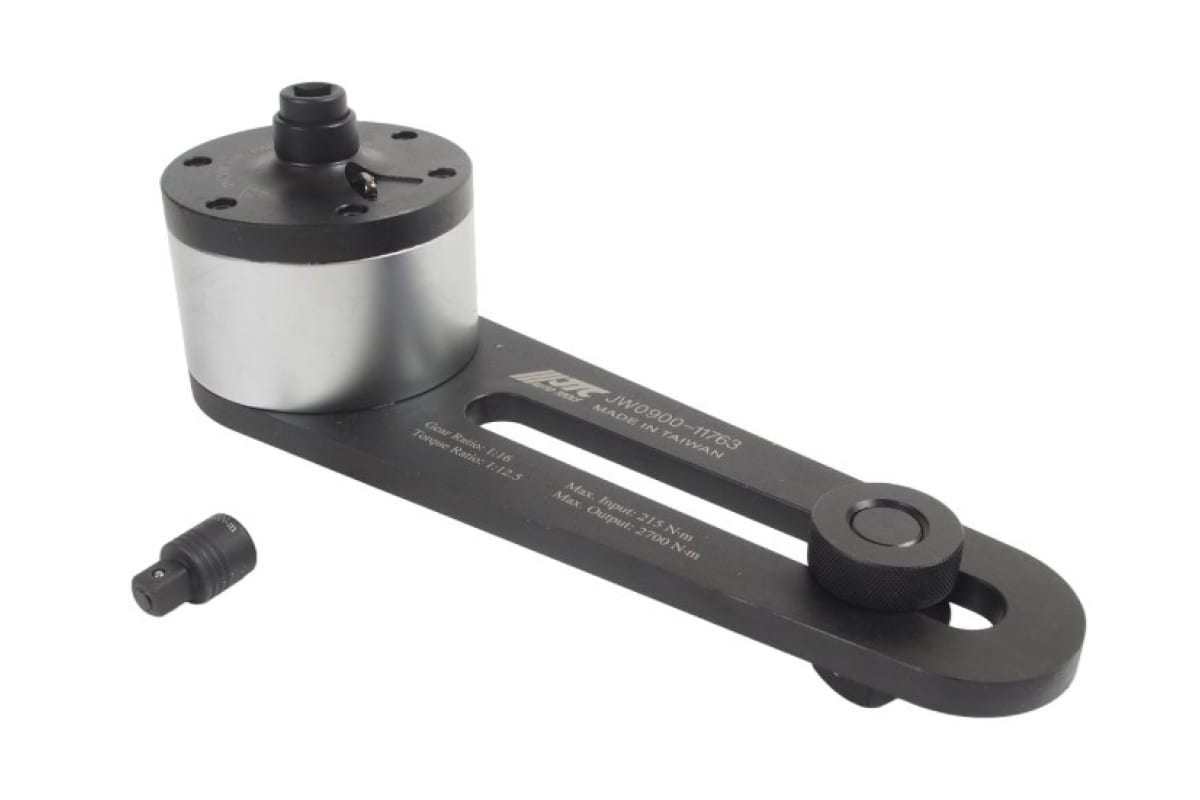 Усилитель крутящего момента, мультипликатор 1/2 дюйма F x 1 дюйма M до 2700Nm JTC-JW0900-11763 поставляется в прочном пластиковом кейсе с рукояткой для транспортировки. Инструмент используется для увеличения крутящего момента на валу автомобиля.