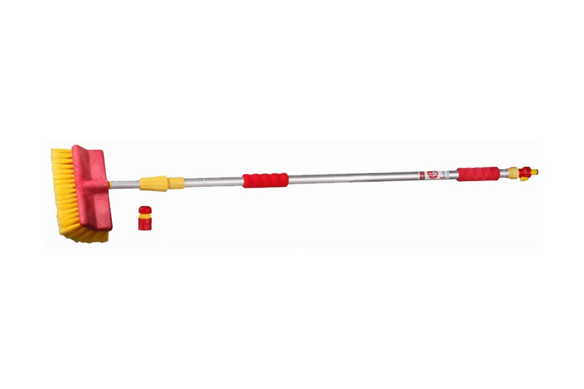 Щетка моющая на телескопическом удлинителе Grinda 8-428486_z01 используется для бережной чистки хрупких поверхностей. Подходит для мойки автомобилей, витрин магазинов, чистки садовой мебели. Закрепляется с помощью соединителя, идущего в комплекте, с водопроводным шлангом. Телескопический водопроводящий удлинитель позволит осуществить чистку в труднодоступных местах. Он выполнен из алюминия с накладками из вспененного полимера. Возможна регулировка подачи воды. Щетка оснащена мягкой щетиной. Длина телескопической рукоятки изменяется от 1250 до 2050 мм.