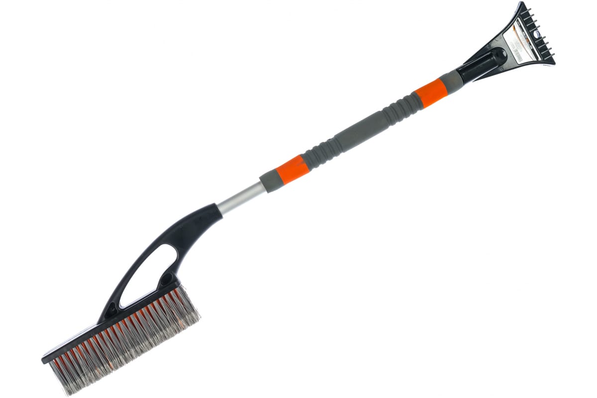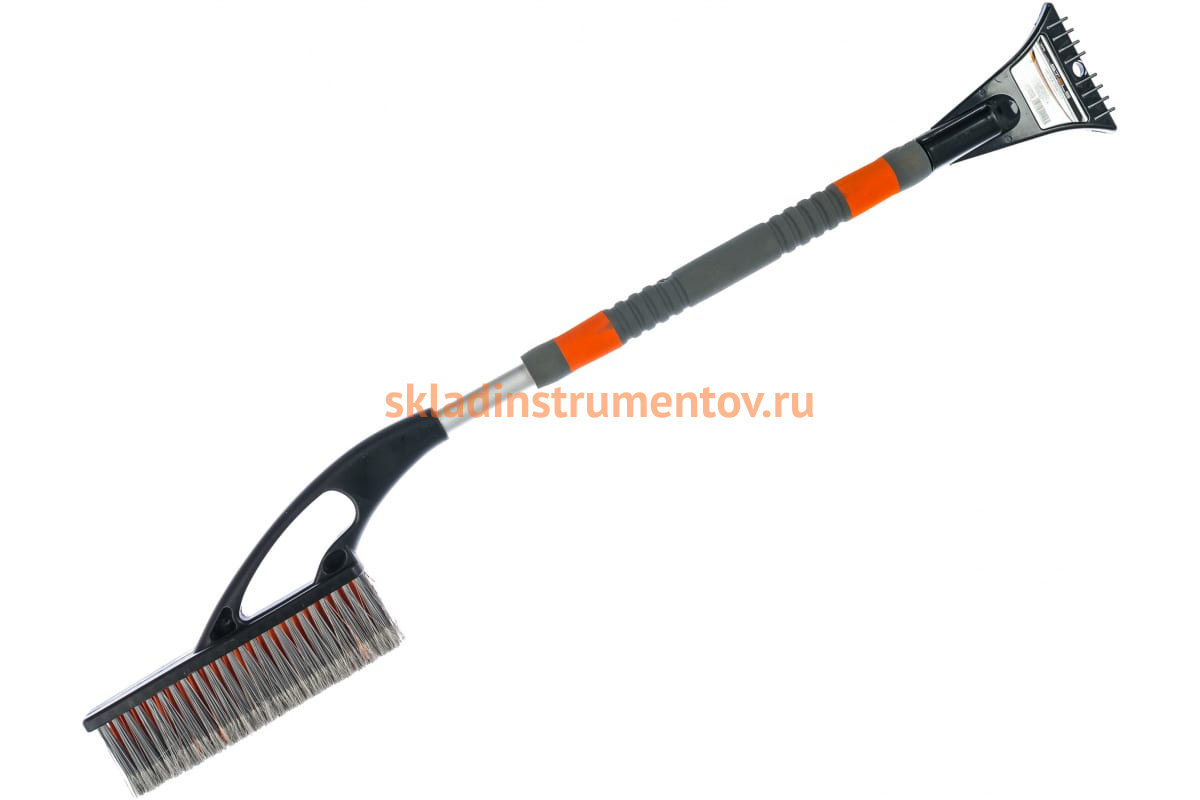 Щетка-сметка для снега со скребком STELS 55298 предназначена для очищения автомобиля зимой. Густая щетина мягко воздействует на поверхность и предотвращает возникновение царапин, обеспечивая бережный уход. Наличие мощного скребка с зубьями позволяет легко очистить ледяную корку со стекол автомобиля, образующуюся в морозные дни. Удлиненная рукоятка выполнена из алюминия, мягкий держатель обеспечивает комфорт во время работы и позволяет крепко удерживать щетку, не допуская ее выскальзывания. Длина - 850 мм.
