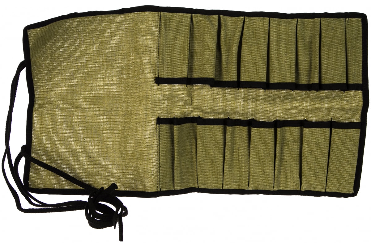 Тканевая сумка-скрутка для стамесок Петроградъ 16 карманов М00006311 компактна в свернутом виде. Подходит для хранения стамесок, ножей, резцов длиной до 30 см. Пошита из плотной ткани - мебельный флок.