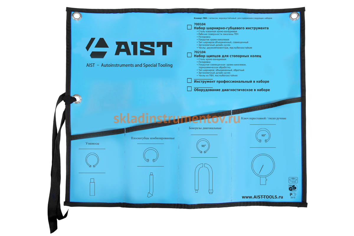 Конверт под инструмент на 4 предмета AIST K700104 00-00008903 предназначен для хранения ручного инструмента - плоскогубцев, бокорезов, ключей и т.д. Выполнен из прочного ПВХ и добавлением латекса.