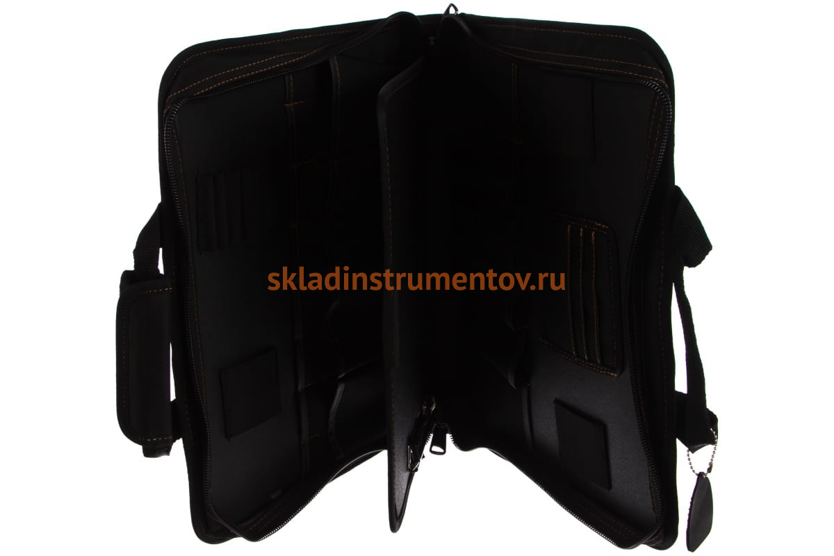 Сумка для инструмента и документов CIMCO 17 5130 пригодится для сервис-инженеров. Она оснащена 18 ячейками для различных инструментов, а также держателем с четырьмя пружинами для каталога и прочих документов. Для крепления мелкого инструмента, телефона или рулетки предусмотрено два эластичных держателя. В комплекте с сумкой поставляется папка формата А4 с двумя ручками для удобной переноски.