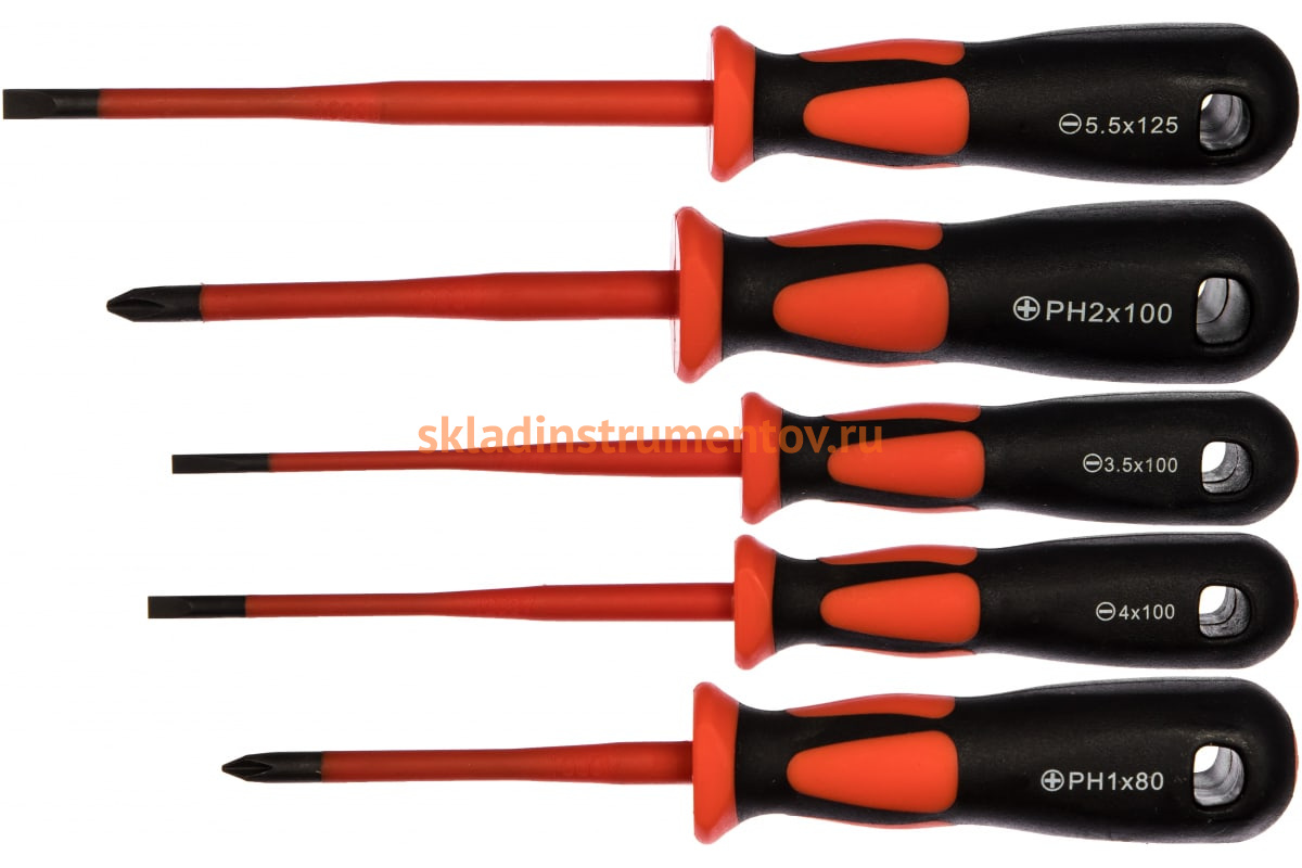 Набор диэлектрических отверток КВТ Слим НИО-3305 78349 подходит для монтажных работ под напряжением до 1000 В. Устройства прошли тестирование под напряжением 10 кВ согласно DIN 60900. Изоляция, утопленная в лезвие отверток, делает возможным монтаж винтов с глубокой посадкой.