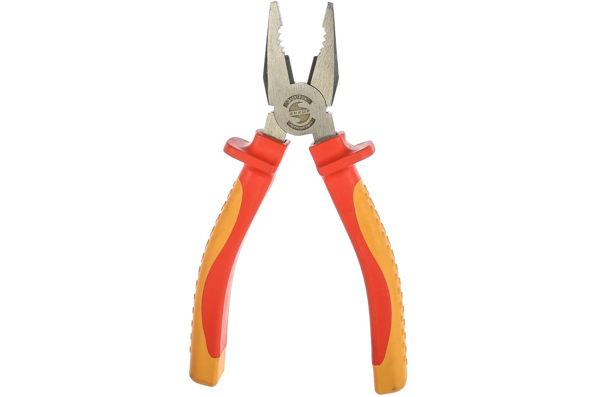 Универсальные диэлектрические плоскогубцы 180 мм 1/6/60 Энкор 19011 применимы для работы с электрическими проводами или электрооборудованием под напряжением до 1000 V. Стальная рабочая часть прошла термическую обработку, что повышает срок службы инструмента. Рукоятки из эластомера TPR обеспечивают безопасность в процессе работы.