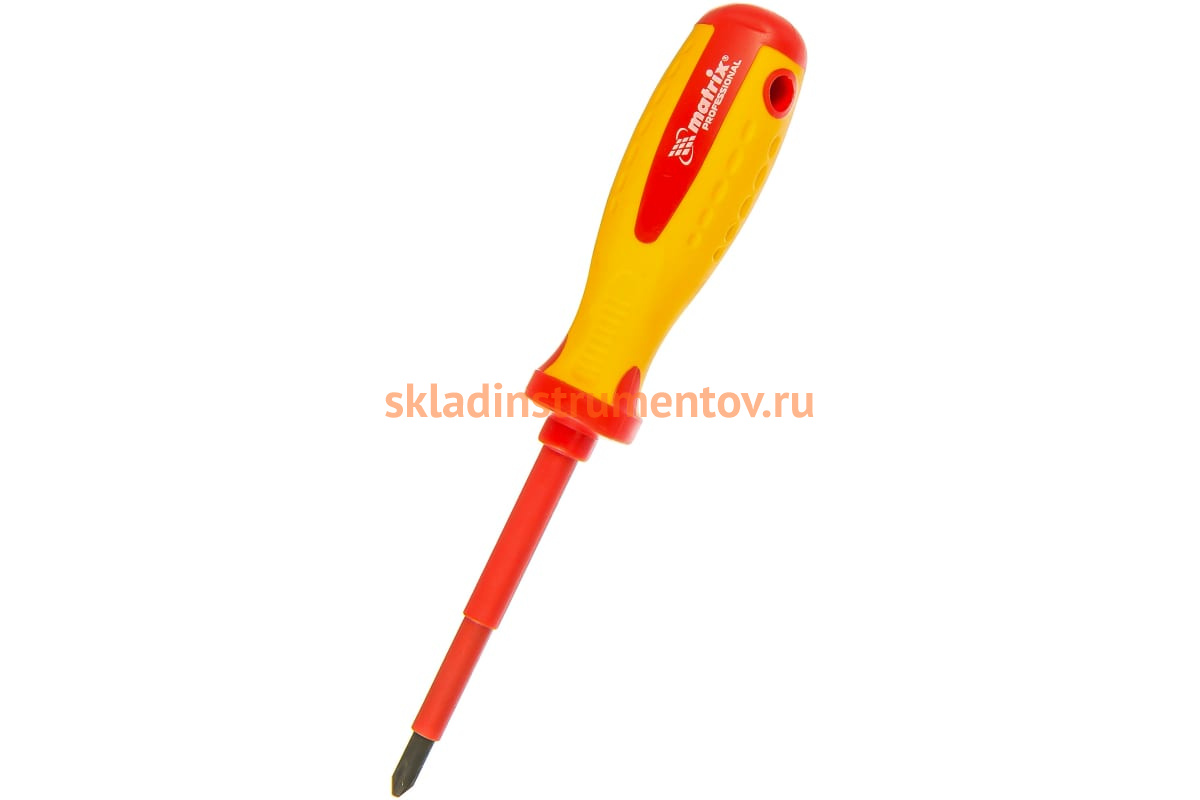 Диэлектрическая отвертка Insulated Ph2x100 мм MATRIX PROFESSIONAL 12928 служит для безопасного выполнения монтажных и демонтажных работ. Изоляция позволяет работать под высоким напряжением (до 1000 В). Благодаря эргономичной рукоятке обеспечивается удобство работы с инструментом, что увеличивает скорость завинчивания и отвинчивания болтов.