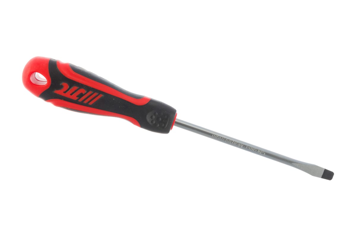 Отвертка, шлицевая SL5.5 x 100мм усиленная JTC 7629 подойдет для крепежа средних размеров. Инструмент имеет оптимальную длину стержня для работы с обычными и заглубленными винтами. Простая конструкция и удобная рукоятка упрощает использование. Защита до 600 В.