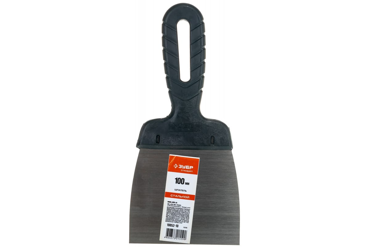 Шпатель Зубр СТАНДАРТ 100 мм 10052-10 используется при малярных работах с целью нанесения и разравнивания строительных и клеевых составов. Полотно из качественной стали обеспечивает прочность и долгий срок службы, пластиковая рукоятка удобно лежит в руке. Ширина инструмента - 100 мм.