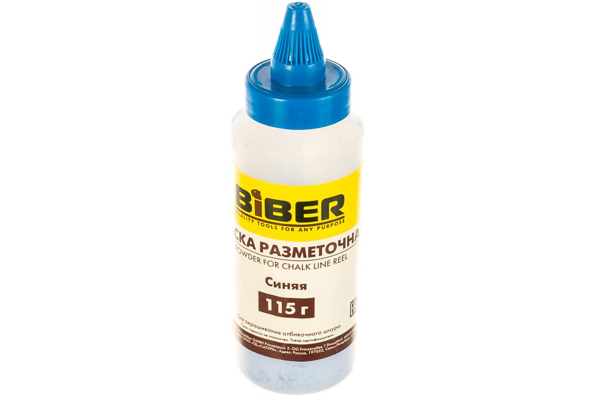 Краска (разметочная, порошковая, синяя) Biber 43202 тов-048259 поставляется в пластиковой емкости. Товар подойдет для шнуров при установке отбивочных линий или разметке в любой плоскости. По завершении работ краска легко смывается с поверхности.