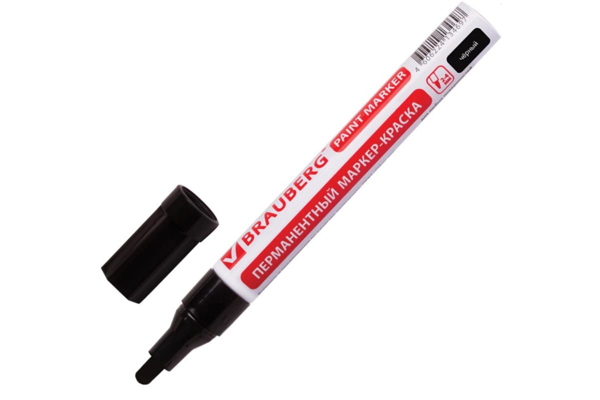 Лаковый маркер-краска 2-4 мм, черный, нитро-основа, алюминиевый корпус BRAUBERG 150877 обладает длительным сроком службы за счет использования особого состава краски.
