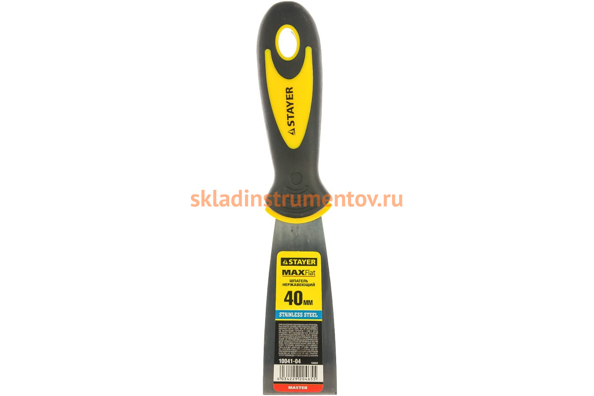 Шпатель 40 мм STAYER MASTER 10041-04 используется при малярных работах. Его основное назначение - нанесение и выравнивание строительного состава на обрабатываемой поверхности. Рабочее полотно шпателя изготовлено из нержавеющей стали, обеспечивая долговечность, эластичность и дополнительную гибкость. Двухкомпонентная рукоятка не скользит в руке и гарантирует комфортную работу.
