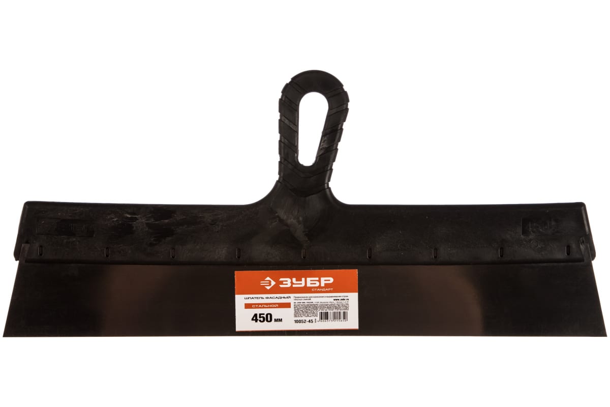 Фасадный шпатель 450 мм Зубр СТАНДАРТ 10052-45 используется при отделочных работах. Его основное назначение - нанесение и разравнивание строительных смесей на больших поверхностях. Полотно шпателя изготовлено из стали, обладающей устойчивостью к коррозии и долгим сроком службы. Пластиковая рукоятка обеспечивает надежный хват.
