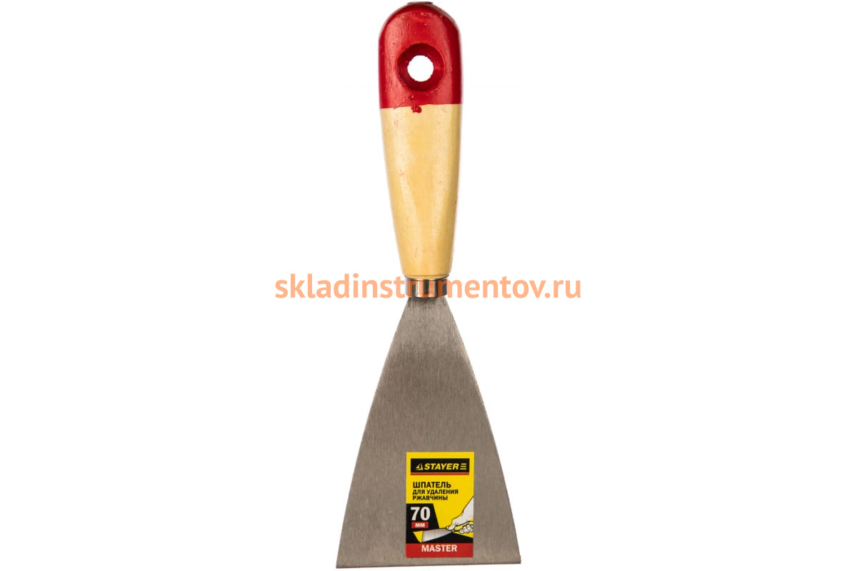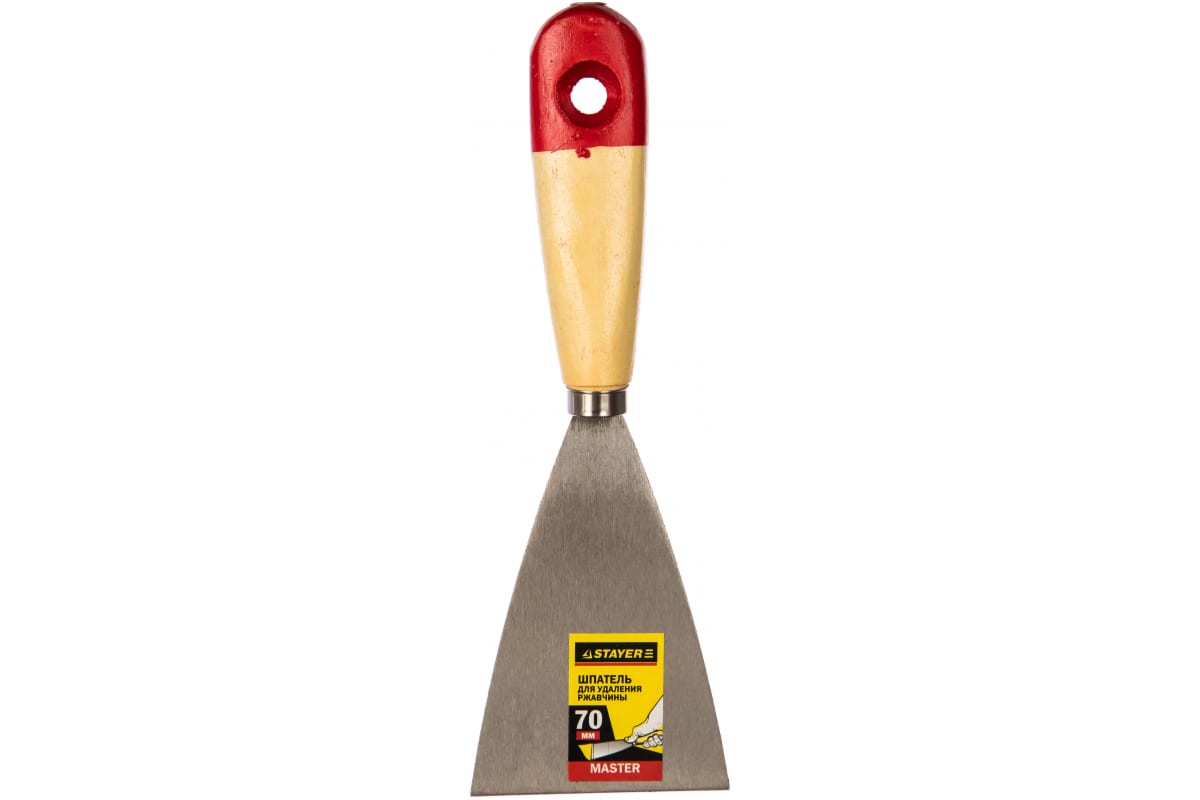 Шпатель для удаления ржавчины, 70мм STAYER 1002-70 обладает прочностью и износостойкостью. Используется для удаления ржавчины с металлических поверхностей. Полотно шпателя изготовлено из стали, что делает его прочным и долговечным. Деревянная рукоять покрыта лаком для удобной работы и надежного захвата.