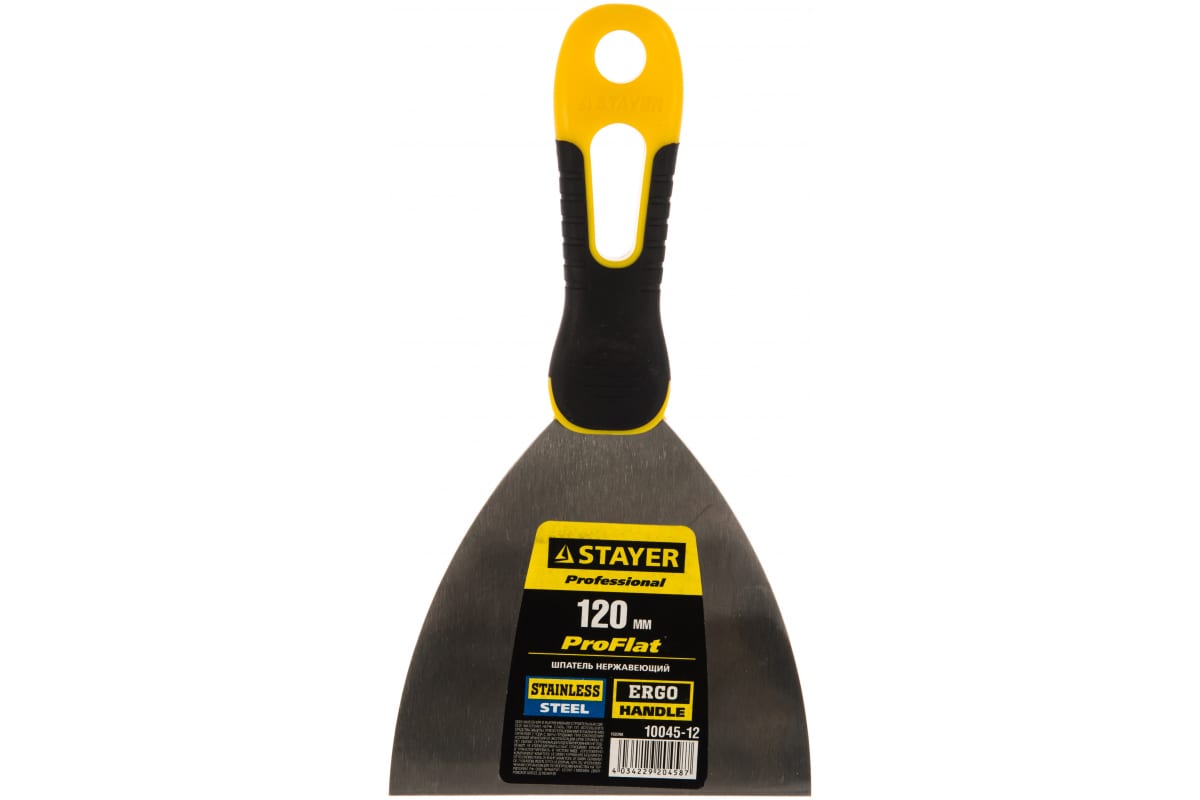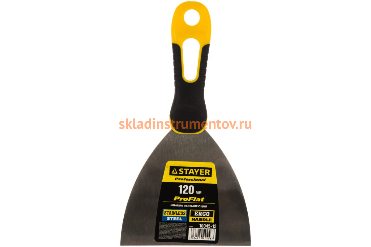 —Шпатель с профилированным нержавеющим полотном и 2к ручкой 120мм STAYER PROFESSIONAL 10045-12—