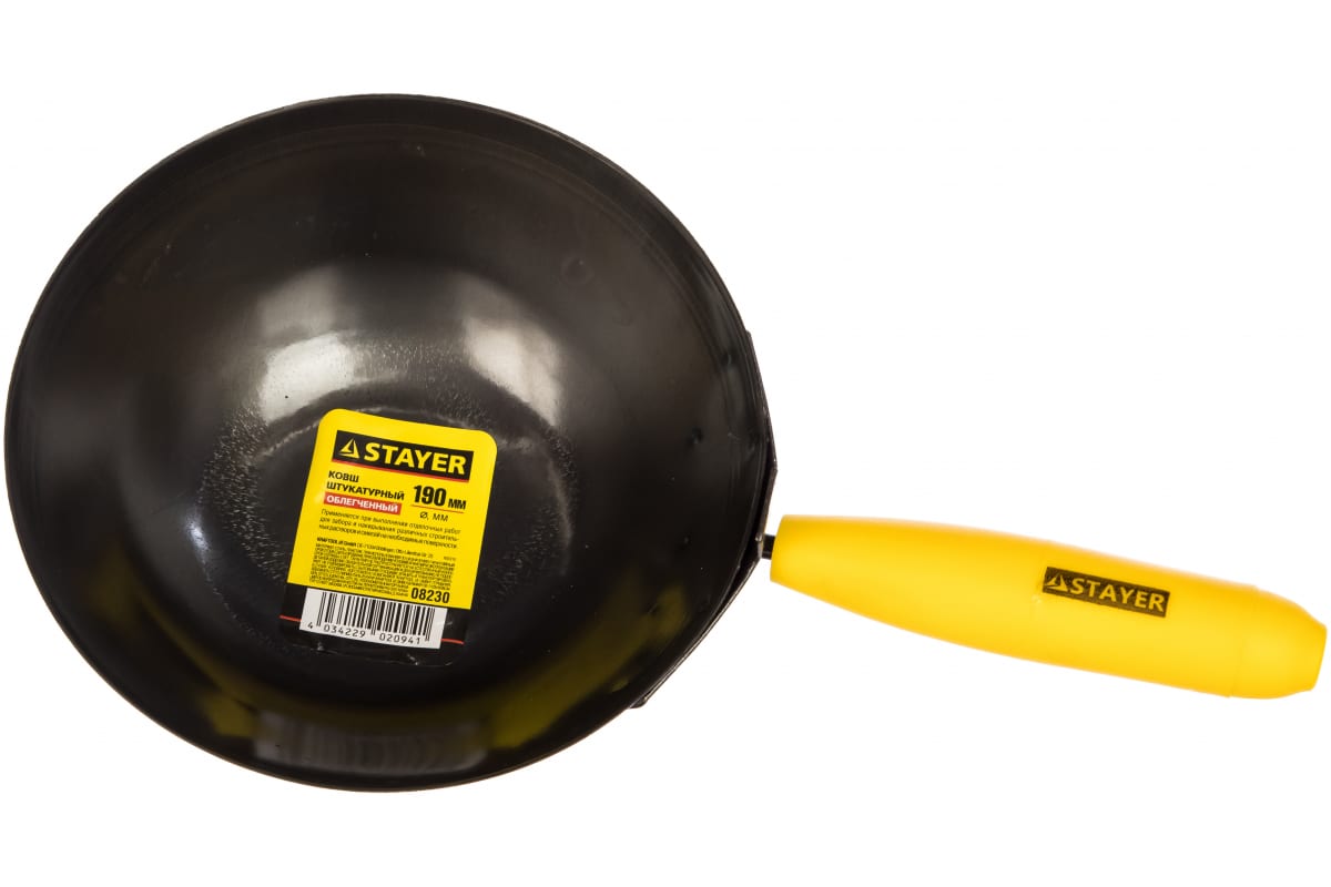 Штукатурный ковш STAYER МАСТЕР 08230 применяется при выполнении отделочных работ для забора и накидывания различных строительных растворов и смесей на необходимые поверхности. Ковш имеет сферическую форму с достаточно глубоким дном. Пластмассовая ручка обеспечивает комфорт при проведении работ.