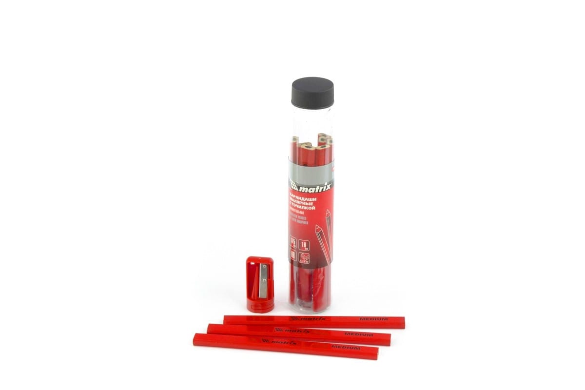 Набор малярных прямоугольных карандашей с точилкой в тубе MATRIX 175мм 10шт 84814 являются универсальным набором для разных задач.