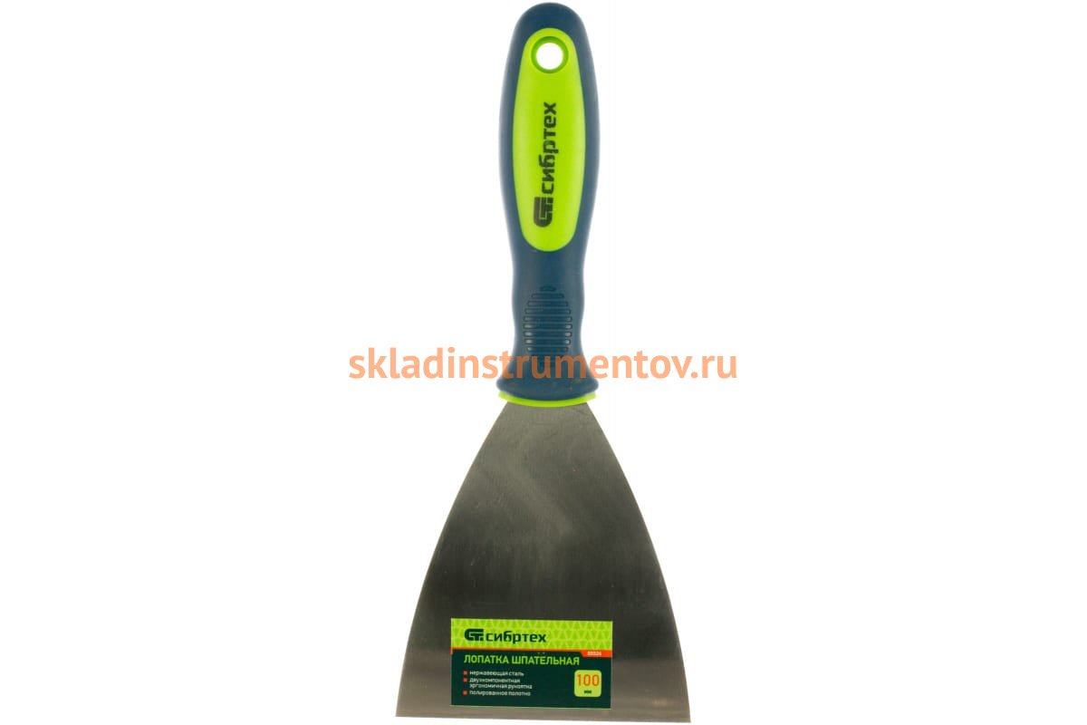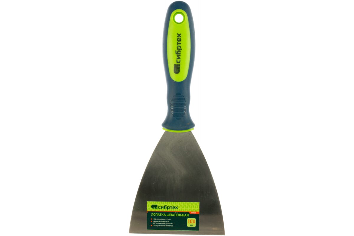 Шпательная лопатка из нержавеющей стали, 100 мм, 2-компонентная ручка СИБРТЕХ 85526 поможет выполнить штукатурные и иные отделочные работы.