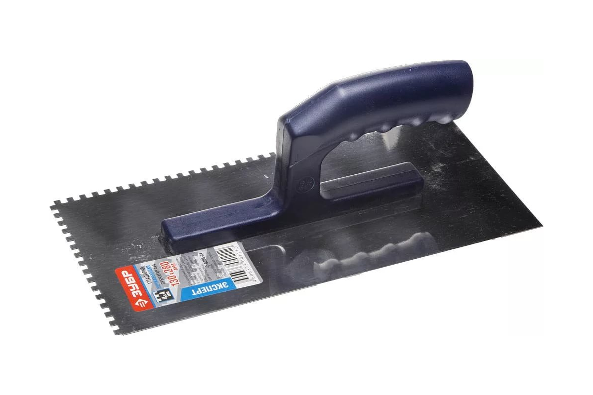 Зубчатая гладилка ЗУБР 0804-04 - ручной инструмент, применяемый при строительных работах. При помощи гладилки удобно наносить и разравнивать различные растворы и смеси. Зубчатая структура рабочего полотна позволяет удобно наносить клеевые растворы.